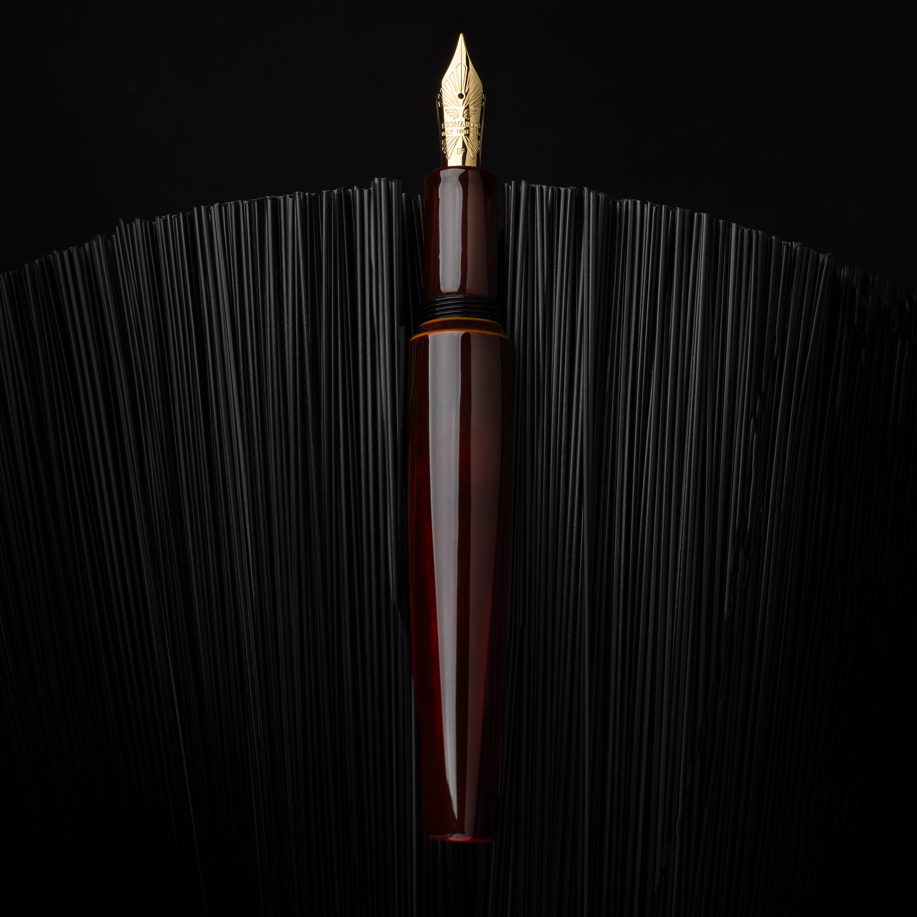 Our choice for the technique used on this model is red Tamenuri, a beautiful composition that, just like water in a pond, at the fountain pens edges it reflects more light, revealing a lighter red.