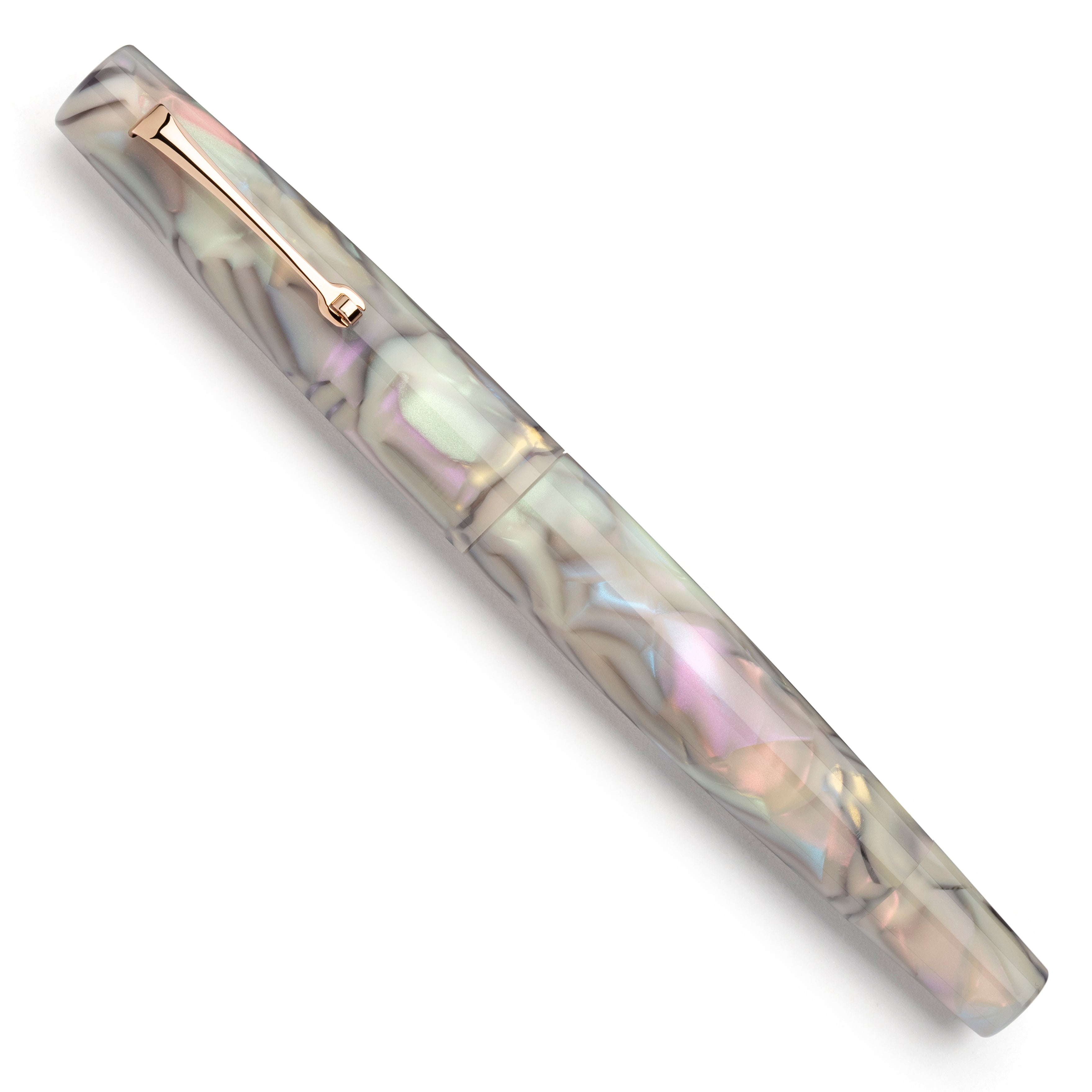 Acetate of cellulosa Silver abalone Rose gold trim.